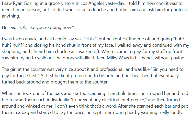 Zvi really put in a Herculean effort to be maximally repellent to the lowbies of Inkhaven. I personally avoided interacting with him, but out of curiosity I went around asking my fellow residents, “so what’s going on with Zvi?” After soliciting impressions from about a dozen people, I stopped; all the responses were pointing in the same direction, and merely mentioning Zvi was vibe-killing. The gestalt I came away with was that Zvi basically did the “I saw X at the grocery store” copypasta to 40 people: